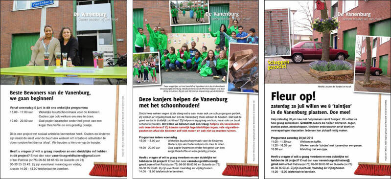 In 2013 leidde ik het project 'De Vanenburg - Samen houden wij het mooi!', waarbij mijn rol zich concentreerde op het initiëren van een schoonmaakproject. Dit project had tot doel de banden tussen bewoners en wijkteam te versterken, samenwerking aan te moedigen, en bij te dragen aan een positief imago van de woonomgeving.